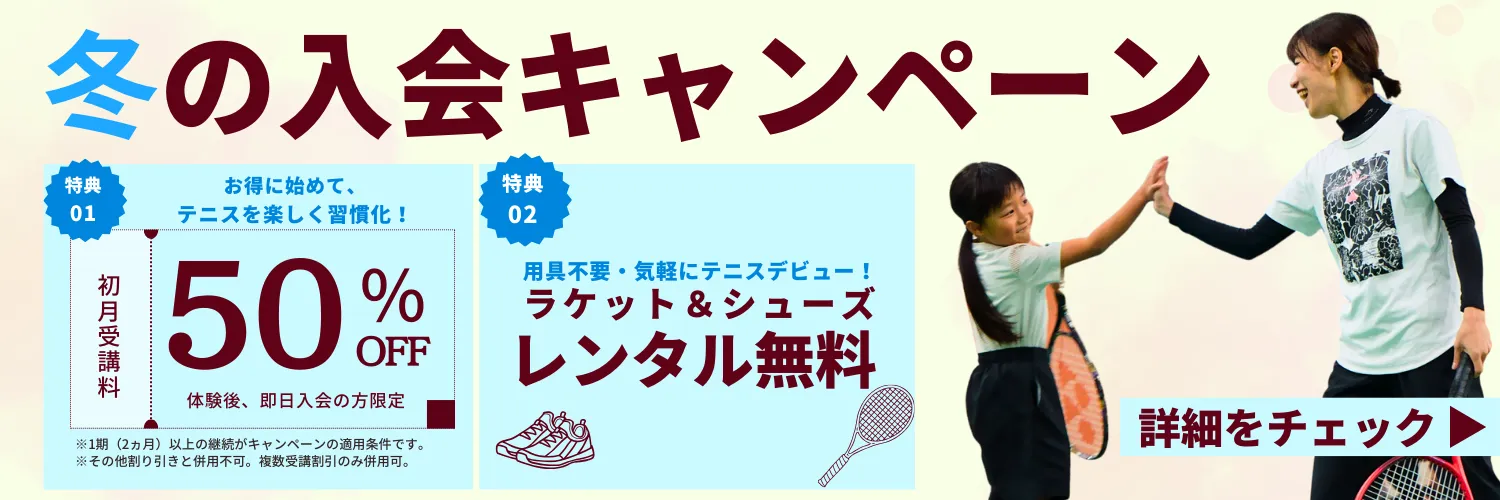 初心者専用の「はじめてクラス」では、ラケットを握った事がない方も、握り方から説明させていただきます。安心して「知らない、分からない」とおっしゃって下さい。また、1コーチ6名の少人数制で、ボールを打ちながら基本を学ぶので、運動量もバッチリです!テニスを大好きな私たちは、テニスの魅力をひとりでも多くの方に知ってもらいたいと思っています。初心者の方達がテニスの魅力のとりことなり、上達されていかれる姿に心より喜びを感じています。最初はみんなが初心者なので、恐がらずボールに触れる感覚を楽しみにお越し下さい!