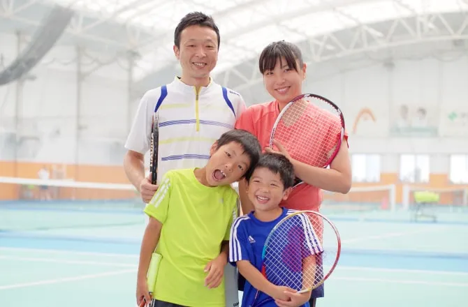 ひとりで行うテニスレッスンは、4歳からできます。親子で行うレッスンは、2歳から可能です。