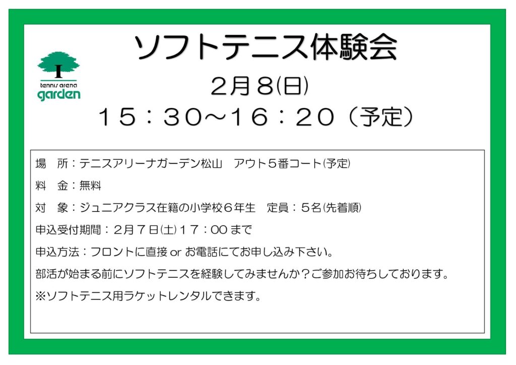 中学校に上がって、ソフトテニス部への入部をお考えの方にお勧めのイベントです。
