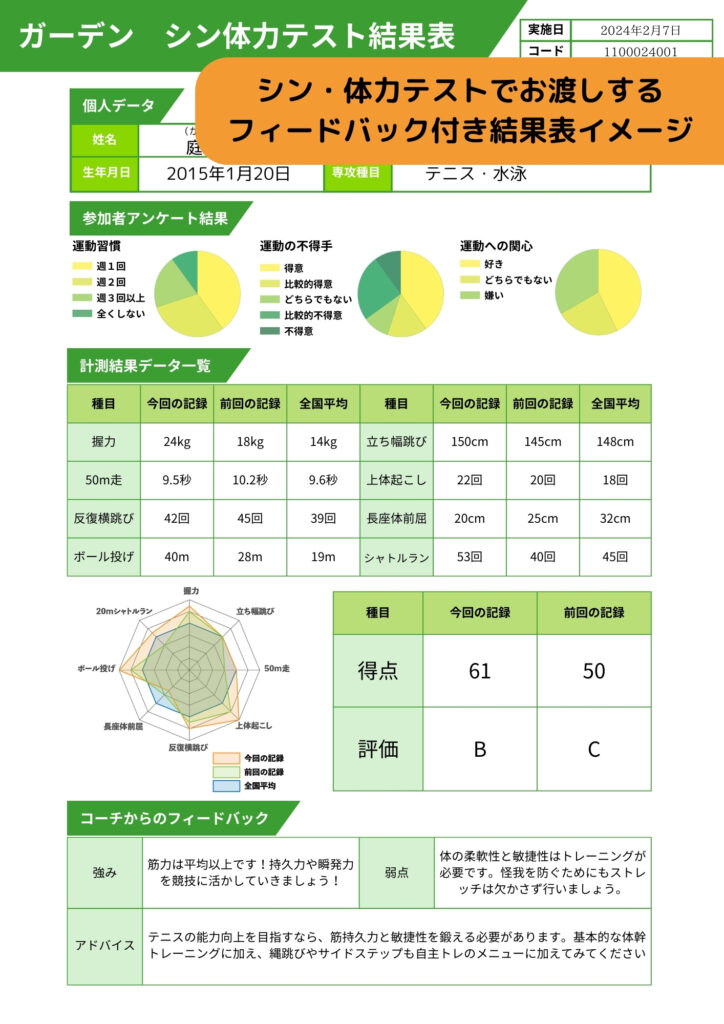 更に、昨年との結果比較&コーチからのフィードバック付きで、春までの課題が見えます!