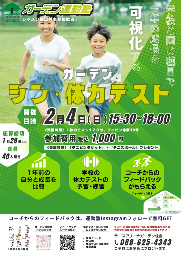 2/4(日)に1年の成長を可視化する「ガーデン シン・体力テスト」を開催いたします。
