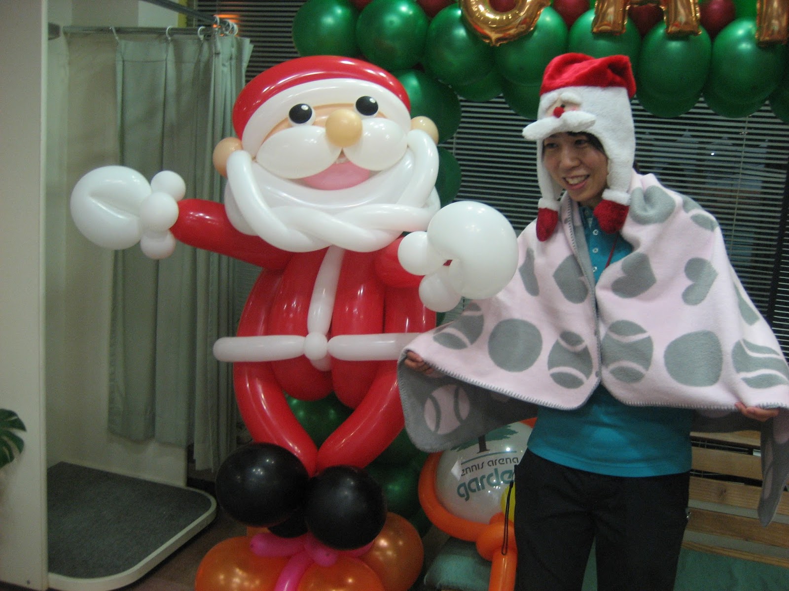ガーデンでは、サンタ衣装をご用意しています!バルーンアートと一緒に写真を撮って頂いて、