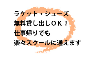 | 基本6ストロークを使って、ゲームができるようになっていただけます。 80分定員:10名(コーチ1名)、12名(コーチ2名) |