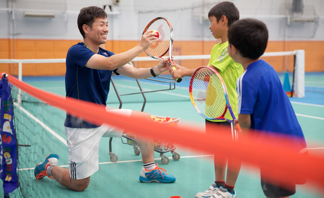 | 大人用のボールより25%弾みを抑えたボール、通常のコートサイズで行います。身につけた技術をゲームの中でどう使うかという戦略を、競技を楽しみながら学べます。 50分定員:10名(コーチ1名)、定員:12名(コーチ2名) |