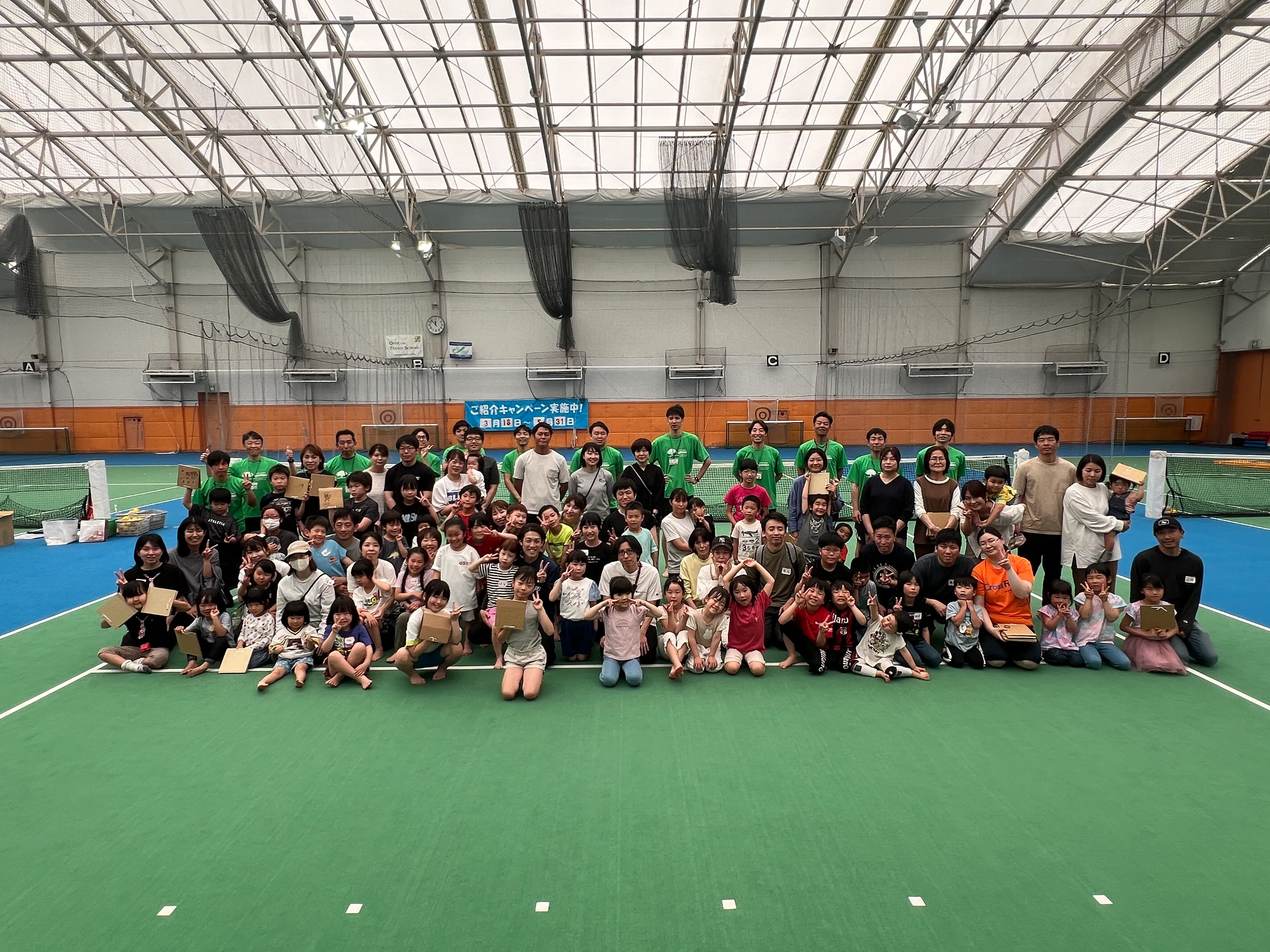 完全屋内・冷暖房完備のテニスコートを使って親子ペアで行える種目を用意して、ガーデンファミリーのご参加をお待ちしています!